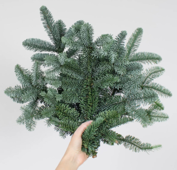 Веточки пихты Нобилис (лапник) отличаются изысканной красотой: их длинные иголки с лёгким изгибом имеют благородный голубоватый оттенок и образуют пышную, густую композицию. Благодаря удобству крепления такие ветви широко применяют для декорирования входных зон — например, дверей или крыльца. Одно из важных достоинств этой хвои — устойчивость: она долго сохраняет свежесть и не осыпается даже без воды. Композиции и украшения из Нобилиса неизменно выглядят роскошно и придают обстановке изысканный, дорогостоящий вид.